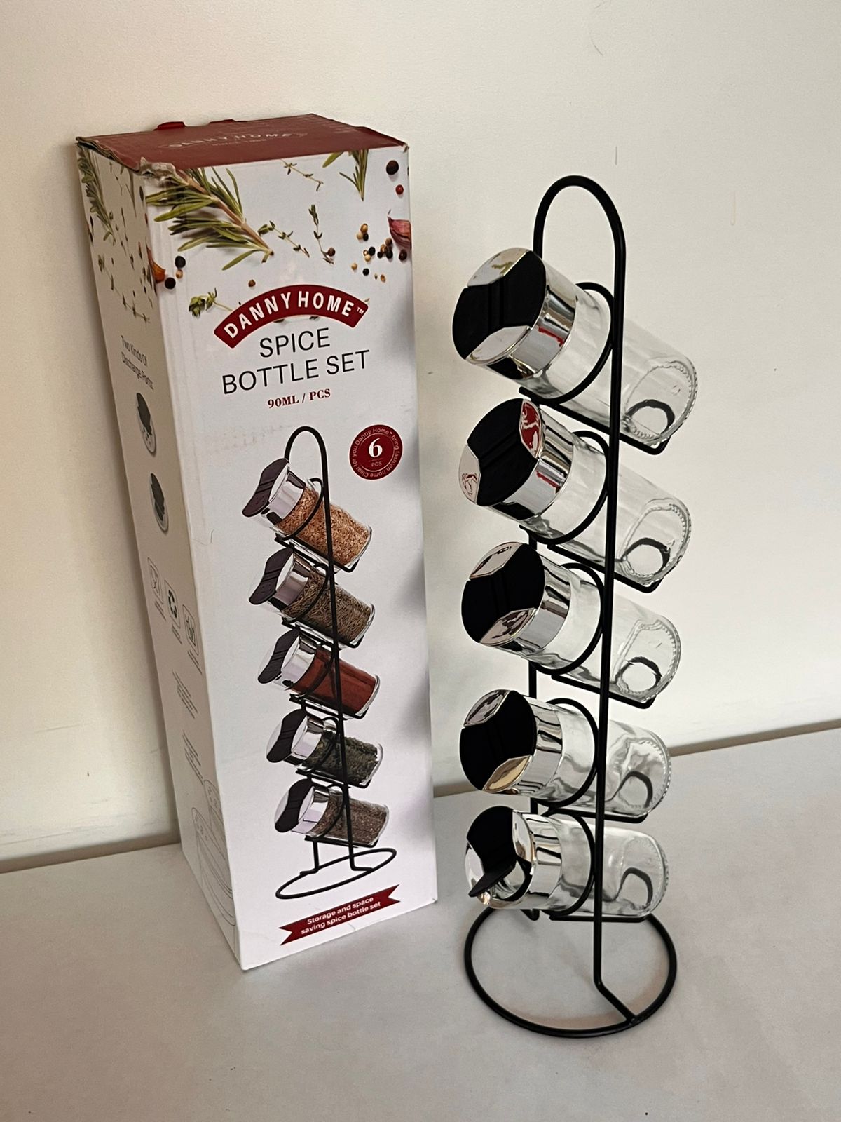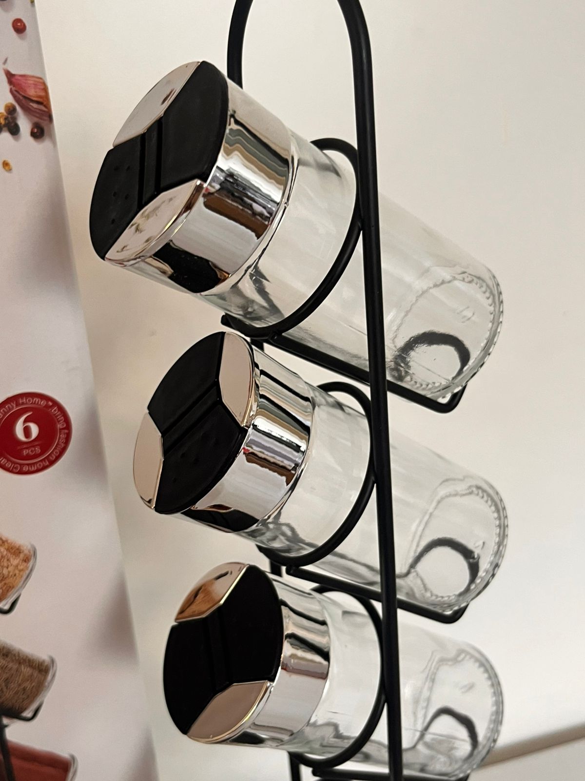 Especieros x5 de vidrio con soporte de metal