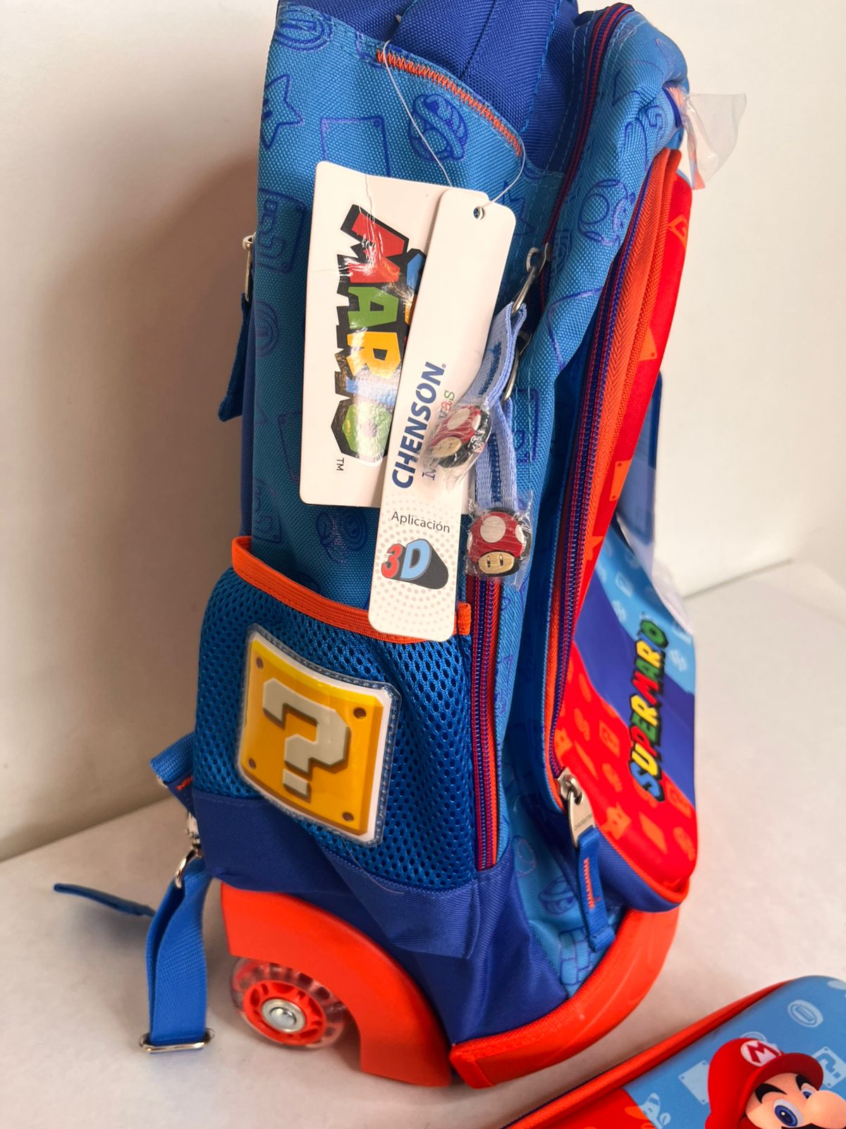 Mochila con ruedas + cartuchera premiun Mario Bross