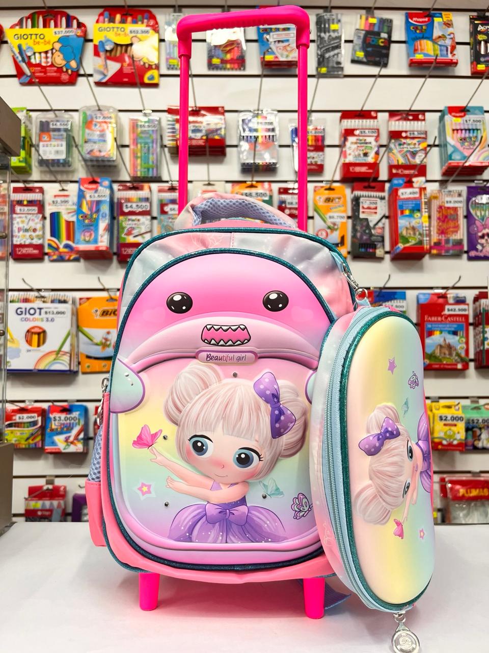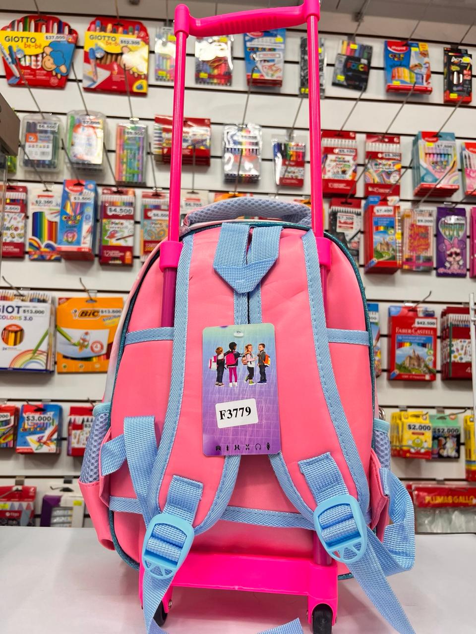 Mochila de 12 pulgadas con carrito, incluye cartuchera y luz